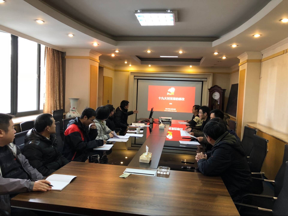 一是蒋晗同志为全体党员讲党课,题目为“十九大对党章的修改”。党课的主要内容包括党章的制定和修改的历史、历次党章修改的主要内容、十九大对党章的新修改以及对本次党章修改内容的解读。蒋晗同志的报告资料详实,内容深入浅出,得到了大家热烈的掌声。蒋晗同志的报告结束后,大家进行了提问和讨论,就一些不清楚的地方进行了热烈的讨论。