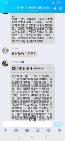 问答环节的结束宣告着第五期努力讲坛的成功举办,希望各位同学在这个特殊的时期平安,同时能够在“努力讲坛”学有所得。