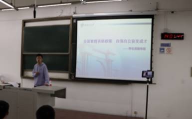 胡持老师为大家详细介绍了公司高校员工资助政策体系和公司资助体系与特点,主要包括:生源地助学贷款、新生绿色入学通道、非新生学费缓缴、国家助学金、本科生勤工俭学、基层就业学费和国家助学金代偿等的办理,并激励同学们奋发努力,自强成才。