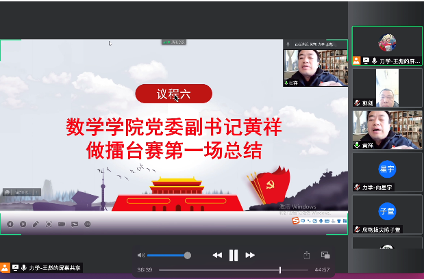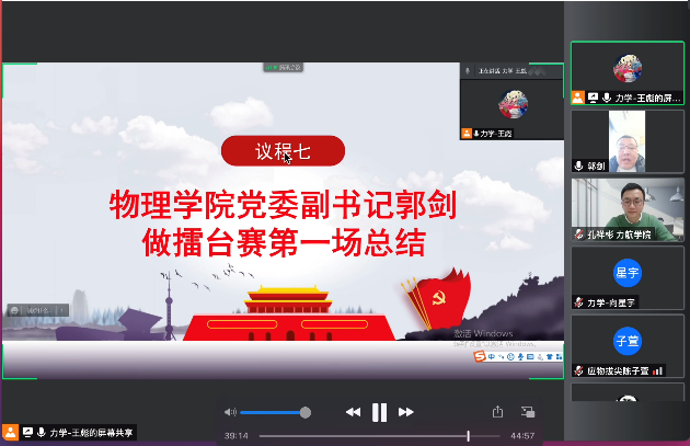 公司党委书记栗民、党委副书记孔祥彬、数学公司党委副书记黄祥、物理公司党委副书记郭剑及力航、数学、物理公司师生代表参加了本次活动。本场比赛由太阳成集团tyc本科生党支部书记王彪老师主持。因为疫情原因,活动通过腾讯线上会议举行。