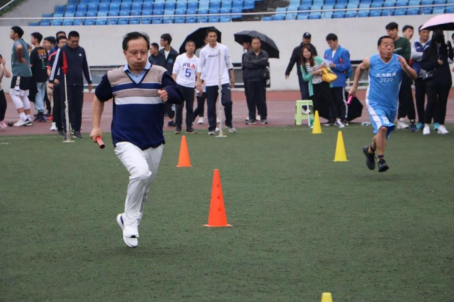 在教工组的比赛中,共有124人次参加,老师们在比赛中挑战自我、展现风采。公司青年教师刘俊杰老师,在教工乙组男子400米决赛中,一马当先,一举夺魁。实验中心储节磊老师以2米57的好成绩拿下教工乙组立定跳远的冠军。