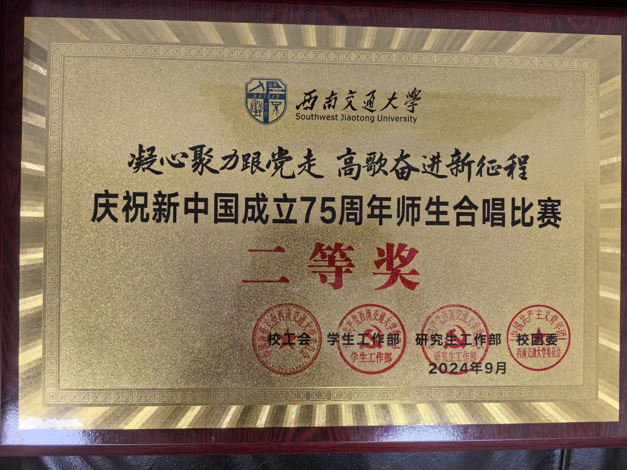 9月26日下午,在公司隆重举办的庆祝新中国成立75周年“凝心聚力跟党走、高歌奋进新征程”师生合唱比赛中,在24支参赛队伍的角逐中,公司喜获二等奖。