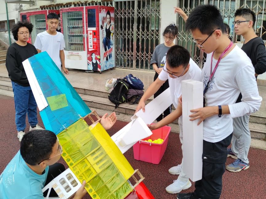 比赛过程中,西南交大航模队队员团结一致,顽强拼搏。从暑假备赛开始,西南交大航模队克服了种种困难,在公司、公司和专业指导老师的支持帮助下积极推进设计制作工作,认真完成了气动分析、建模、切割、测试等各环节,制作了参赛用机,并且在投放系统、制作工艺、动力系统等各个方面不断地迭代优化,提升改进。最终,参赛模型采用上单翼,双发,常规尾翼布局,长1.5m,翼展1.8米,设计最大载荷为44个网球。
