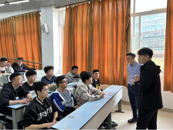招聘会期间,作为工力2022-03班就业导师,陈鑫员工抽空来到教室与同学们进行了第一次线下会面。他向大家介绍了自己以及当时的室友本科学习生活情况和毕业去向,鼓励同学们学习好专业知识的同时要做好个人职业规划、提升个人综合能力,为以后的就业打好基础。班会最后,孔祥彬向陈鑫员工表示了感谢。