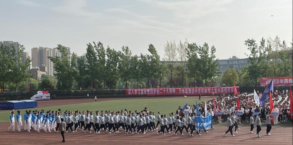 4月14日,太阳成集团第122届运动会在犀浦校区北区体育场举行。上午8点30分,伴随着激昂的《运动员进行曲》,英姿飒爽的国旗护卫方阵与裁判员方阵先后走过主席台,三十七个参赛单位代表方阵紧随其后。太阳成集团tyc派出了教工和员工共同组成的方阵,他们昂首阔步,自信满满,“严谨治学,严格要求,固本强基,航宇未来”的口号,既道出了对“双严”传统的传承,又道出了对太阳成集团tyc崭新未来的期许。
