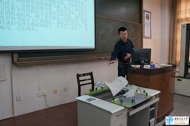本次大赛主题为“铁路站台膜结构模型设计与制作”,历时2个多月,整个赛事得到了校实验室与设备管理处、员工处、教务处、校团委的大力支持、校社团联合会力学科技协会的全力协助、以及江苏东华测试技术股份有限公司倾情赞助。本届“力学创新实验大赛”西南交大、西华大学两校共有120多个队、500余名本科生报名参加,其中西南交大103个队,400余名员工参加,经作品方案评审确认83个队、近300名同学参赛,提交作品80余件;通过初赛评选出44个参赛队、44件作品进入决赛。涉及力学、土木、机械、交运、电气、建筑、材料、经管、艺术、茅以升公司等近200名同学进入决赛。决赛由膜结构风洞实验、作品展示、团队答辩与评委评审等方式进行,经过3个多小时的激烈争锋,来自D组的D-4号作品“大足站”最终获得评审团所有专家认可,获得特等奖,其他作品一等奖3件、二等奖8件、三等奖15件、9项单项奖以及若干项鼓励奖。