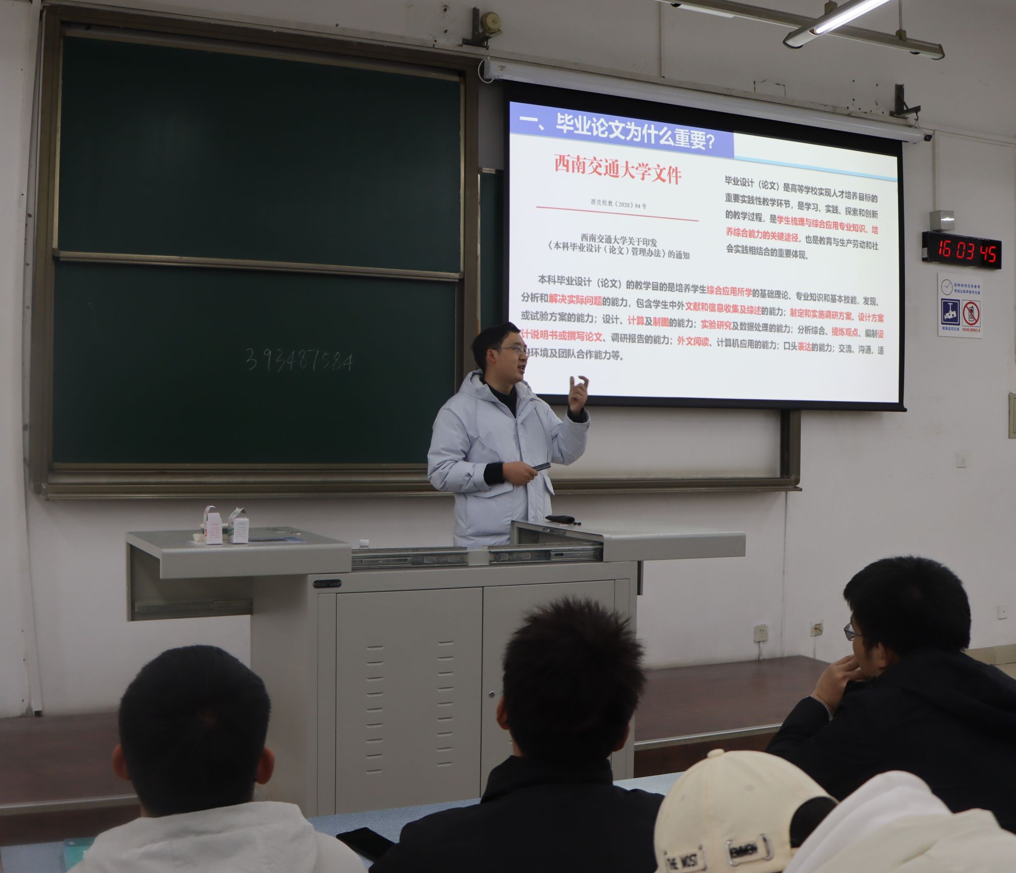 为加强对2024届本科毕业论文的管理,有力推进“奋斗的朋友”深造就业服务活动, 2月29日下午16:00,公司邀请经理助理苗鸿臣副教授、2023届“百篇优秀本科毕业设计(论文)”获得者周德龙同学为公司2020级同学进行本科毕业论文的指导和撰写心得分享。讲座由辅导员安晟斐主持。