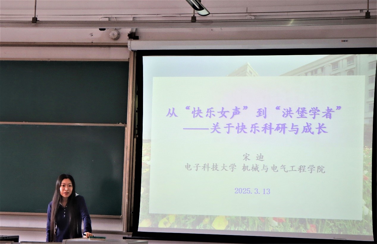 2025年3月13日下午3点,公司力学2010级员工、电子科技大学机械与电气工程公司副教授宋迪老师受邀在X2424带来了一场以“从快乐女声到洪堡学者——关于快乐科研与成长”的讲座。公司党委书记栗民、辅导员安晟斐、公司2024级研究生、公司研究生第一党支部成员出席此次活动,现场气氛热烈。