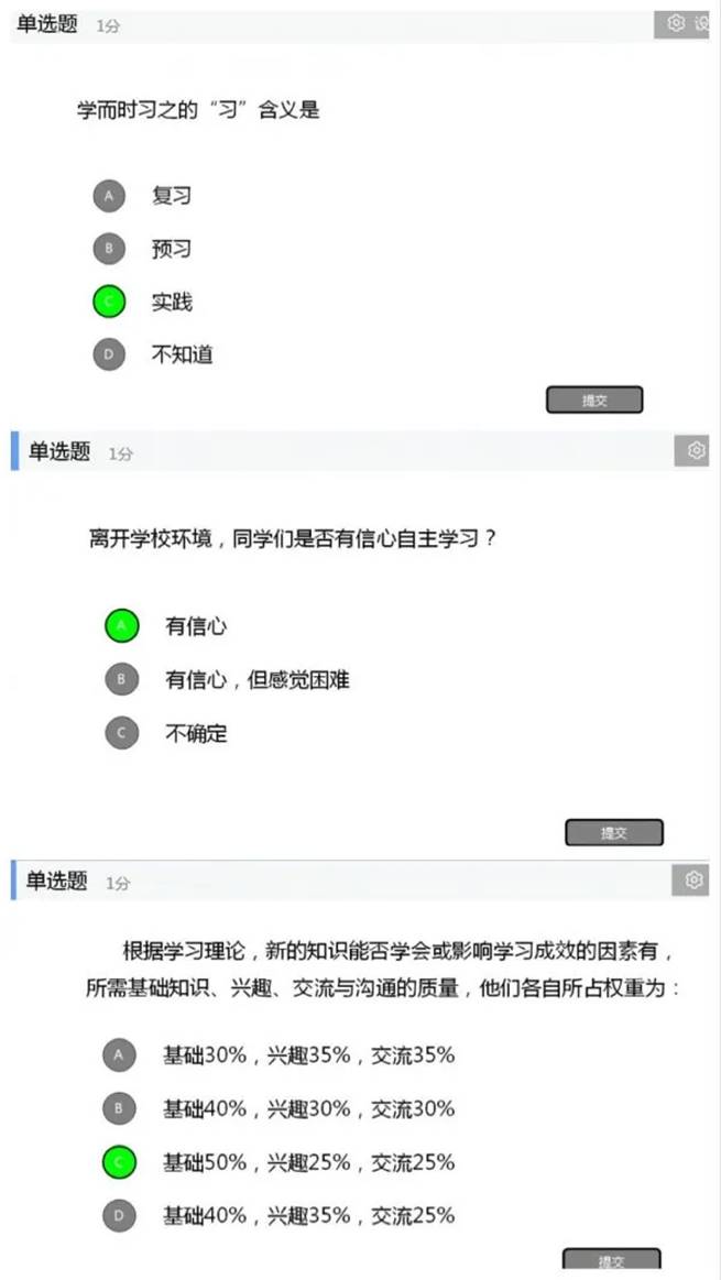 为提升学习效果,设计了很多问题,促进员工不断思考。线上同学参与度很高,雨课堂卡时,同学们会迫不及待在教学班QQ群回答。