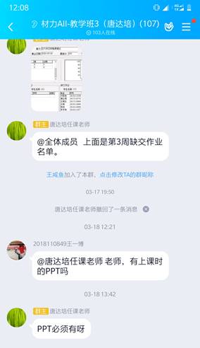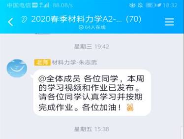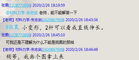 每周上课时间段,老师都会要求同学们上课签到,若是没有课程安排老师也会守在QQ群中在线答疑。对于材料力学在线系统使用过程中可能出现的问题,老师都做了详细的视频讲解以及问题解决方案。对学有余力的同学,张老师还会在课堂作业之外额外布置思考题,或者推送有关于材料力学在生产生活中应用的小文章,以促进同学们对材料力学这门课程在深度和应用角度两方面的理解。