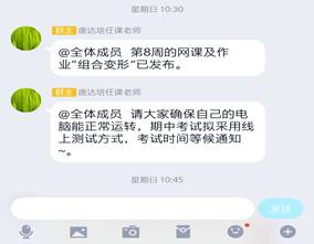 江老师上课前都会提前5分钟开启QQ视频通话,提醒同学们上课。上课主要是补充讲解员工系统的网课内容和知识点细节。由于大部分员工都没有带书,江老师会在群内发布电子版文件,也经常会讲解书后习题,江老师讲解问题非常细致,更加注重引导同学们思考更深层次的问题。虽然在线上教学,江老师随时开着QQ群以便沟通交流,QQ群也非常活跃,讨论问题的同学很多,江老师对同学们学习中的答疑总是很及时。
