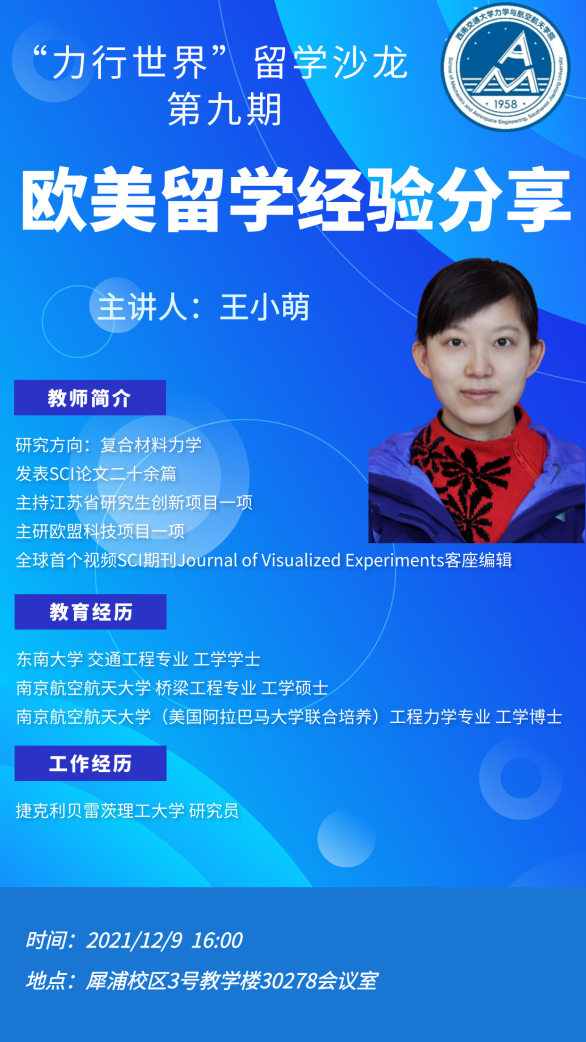 12月9日,“力行世界”留学沙龙第九期活动在犀浦校区3号教学楼30278会议室进行,本次沙龙邀请公司青年教师王小萌老师向同学们分享了自己的欧美留学经验。活动由古定翱老师主持。
