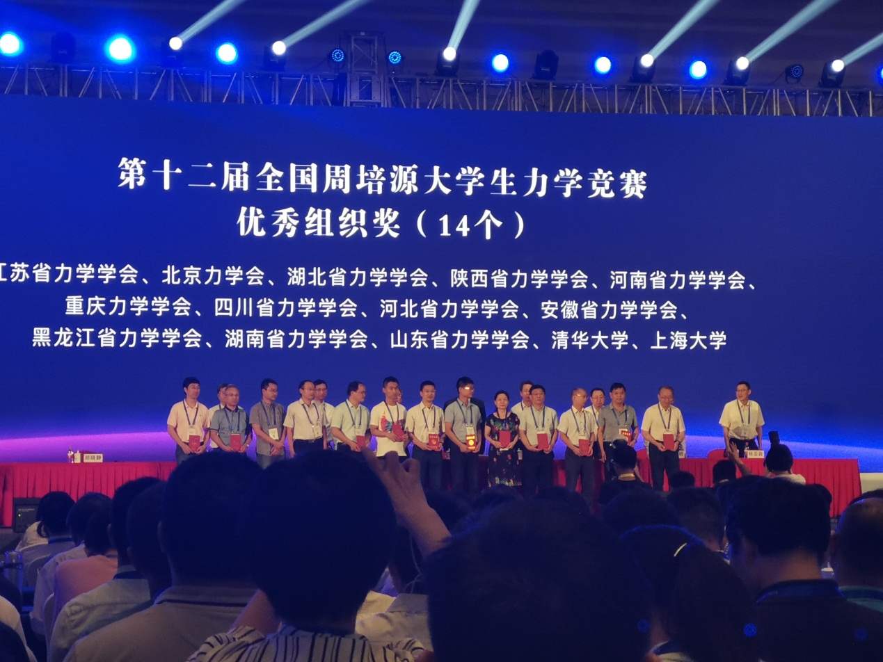 大会首先进行了全国周培源老员工力学竞赛颁奖仪式,四川省力学学会荣获优秀组织奖,四川省力学学会秘书长蒋晗教授代表四川省力学学会上台领奖。