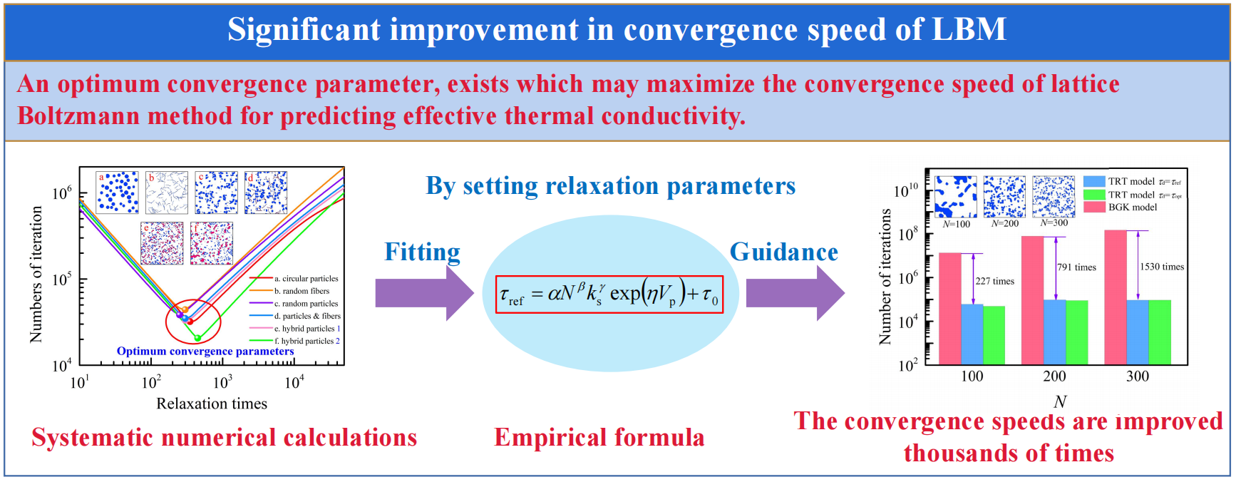 格子Boltzmann方法(LBM)在预测复合材料的等效热导率方面有着天然的优势,因而得到了学者们的广泛使用。然而对于目前工业中涌现的碳纳米管、石墨烯等高导热填料填充的聚合物复合材料,由于填料与基体间的热导率比值通常在数千倍以上,传统的热LBM算法在预测其等效热导率时会存在计算精度低和收敛速度慢的问题。仅对于单个复杂的模型,通常都需要数个乃至数十个小时的计算时间才能完成。这一问题使得系统性和大规模性的数值计算任务往往难以实施,严重制约了复合材料等效热导率数值研究的开展。