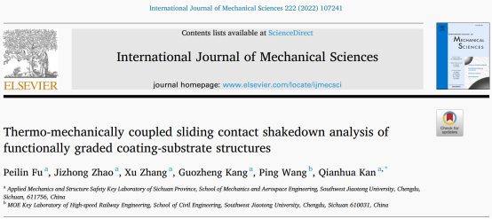 近日,阚前华教授团队在功能梯度材料的热力耦合接触安定研究上取得重要进展,相关工作以“Thermo-mechanically coupled sliding contact shakedown analysis of functionally graded coating-substrate structures”为题发表在机械科学领域顶级期刊《International Journal of Mechanical Sciences》(中科院一区TOP,IF:5.329)。博士研究生伏培林为第一作者,阚前华教授为通讯作者。