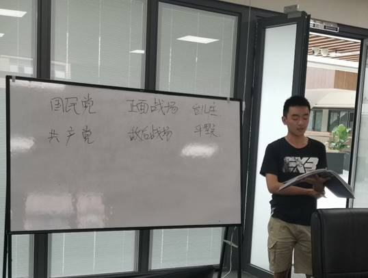 本次擂台赛采用“原原本本”讲述的方式,要求在学习和讲述中不使用电脑、手机及PPT,而是用白板黑字这种原汁原味的方式讲述自己对党史的体会和心得,让自己所讲的党史更加深入人心。本次活动共有三位领学人:物理公司寿毅航、数学公司苏欢、力学公司王烽,内容分别选自《中国共产党简史》第三章、第四章和第五章。