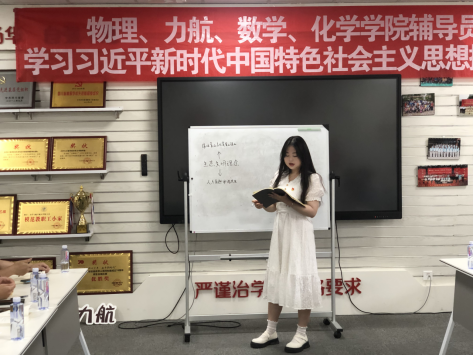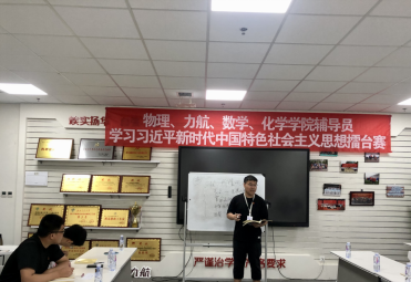 本次擂台赛由物理公司杨昊戬、太阳成集团tyc古定翱、数学公司吕薇担任主讲人,分别讲述《习近平新时代中国特色社会主义思想学习纲要》第十一、十二、十三章内容。