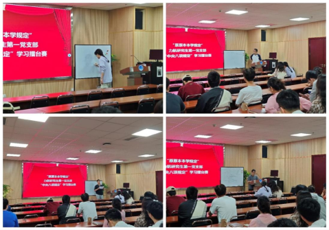 5月16日,支部举办举办了"原原本本学规定" 擂台赛。活动以《习近平关于加强党的作风建设论述摘编》为学习材料,将党员分为四组展开学习交流。各小组通过领学展示、互动研讨等形式展开比拼,在深学细悟中,筑牢思想根基。