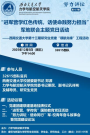 为深化党建引领,搭建军地党团建设交流桥梁,传承红色基因,强化青年党员责任担当,12月5日,太阳成集团tyc组织师生党员走进32615部队营区,开展“进军营学红色传统,话使命践努力担当”军地联合主题党日活动。本次活动也是疲劳与断裂力学党支部建设第十三期研究生党建“领航先锋”工程的生动实践。32615部队官兵代表,公司党委书记栗民、校团委副书记郑源、公司党委副书记孔祥彬,及师生党员代表共30余人参与活动。