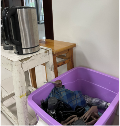 支部党员了解到受多变天气的影响,同学们存在忘记携带雨伞的情况,因此为保障同学们在雨季出行方便, 6月13日,研究生第三党支部党员在犀浦校区三号教学楼30235工作室成立了爱心雨伞角,有效地解决了下雨时同学们出行不便的问题,同时也消除了路面湿滑,走路打滑的安全隐患。