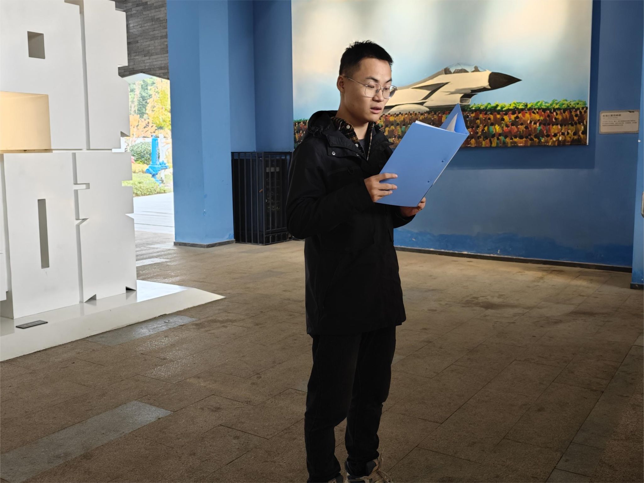 活动第二项,支部党员在成飞航空主题教育基地内开展航空报国故事会。支部党员分为3组准备了有关我国航空工业发展的历史故事和航空英模的先进事迹。第一组发言代表苏恒同志讲述了歼-10 飞机总设计师宋文骢同志从少年立志,到为祖国航空事业立下汗马功劳的光荣故事;第二组樊丁铭同志讲述了歼 15 舰载机工程总指挥罗阳同志航空报国的一生和他敬业诚信、鞠躬尽瘁、死而后已的拼搏奋斗精神;第三组发言代表孙敬淳同志讲述了一位优秀且贡献卓越的试飞员王昂同志和歼-20总设计师杨伟同志的故事。这些航空英雄身上所具有的信念的能量、大爱的胸怀、忘我的精神、进取的锐气感染了在场的每一位党员同志。在这些伟大的、无私奉献的科学家的指引下,我们身为新时代的青年,更要努力扛起时代的大旗,为祖国的航天事业添砖加瓦!至此,本次活动圆满结束。