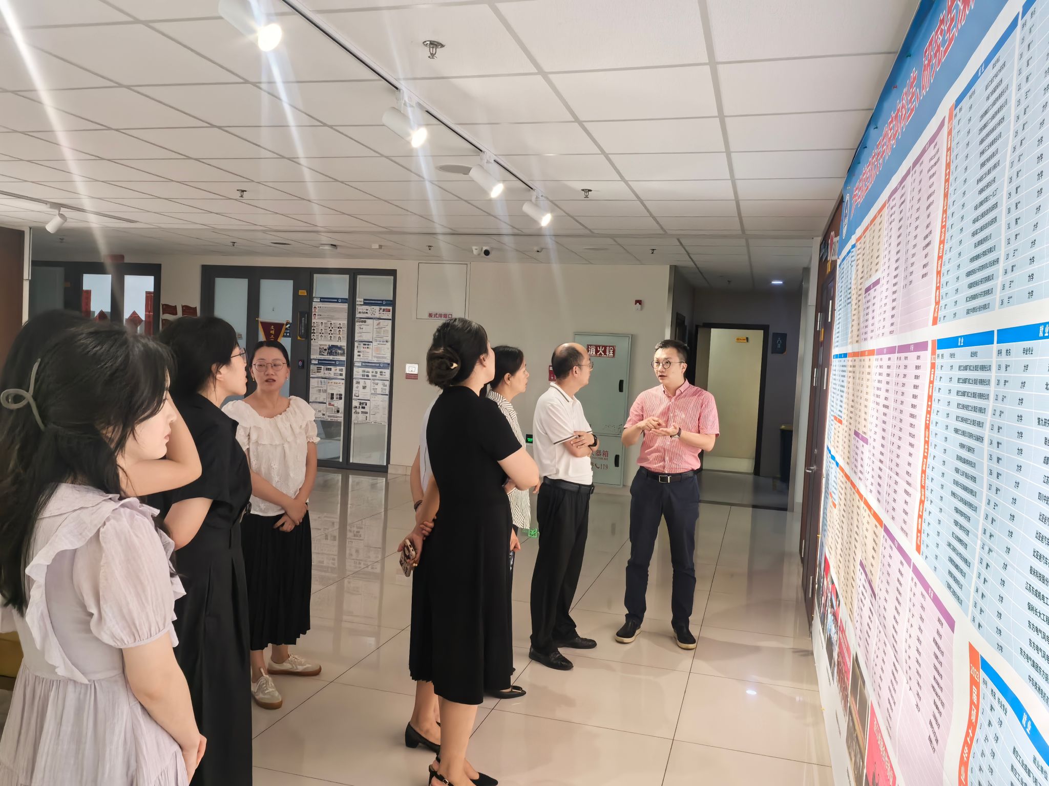 首先,孔祥彬副书记带领彭波部长一行人参观公司展出飞机模型及就业深造情况表等,双方就员工深造率和就业率等深入开展交流。