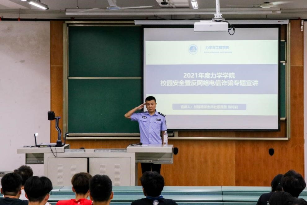 讲坛最后,黄冠翔老师指出,希望同学们谨记陈柯君民警讲解的相关案例和防骗知识,增强自身应对网络电信诈骗能力,并将学到的防诈骗知识分享给同学、家人、朋友,为共筑平安和谐校园、社会贡献自己的力量。