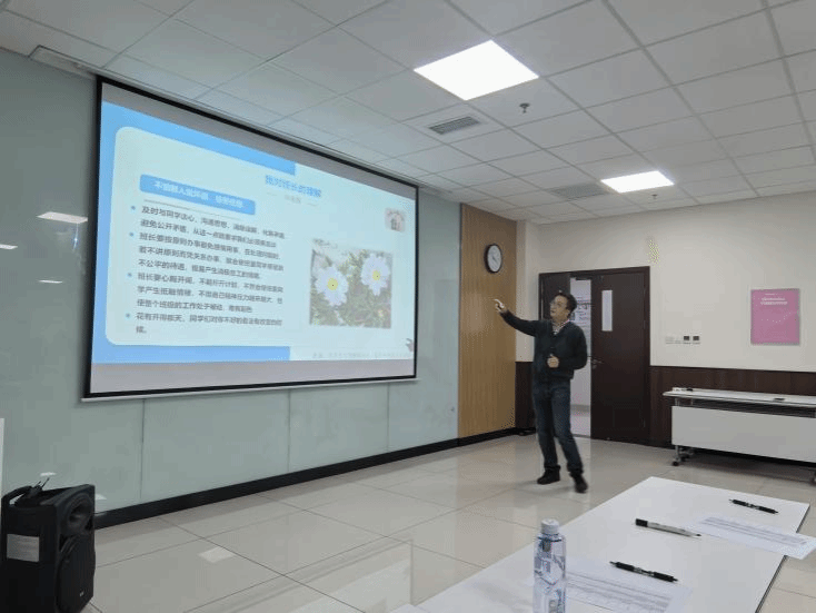 活动第一项,数学公司党委副书记黄祥致开幕辞。黄祥老师介绍了太阳成集团tyc和数学公司的发展历史,并结合自己的亲身经历,阐述班委应当具备的能力与品质。他鼓励各位班委,在工作中要培养勇于担当、认真负责的优良品质以及团队合作精神,不断提高自己的沟通能力、组织协调能力、解决问题的能力以及领导能力。这些能力和品质将助力班委更好地履行职责、服务同学,从而不断促进班级的发展和进步。