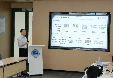 首先,陈臻林教授代表成都理工大学环境与土木工程公司介绍了成都理工大学力学团队建设及工程力学系的发展历史及当前现状。陈教授介绍到,成都理工大学工程力学系2008年新成立,2022申请到了力学硕士点,随后获批省一流专业。但工程力学系在快速发展的同时也面临如人才队伍建设滞后、教师课程压力较大、专业建设经验不足等问题。陈教授指出本次交流期望以工程力学专业建设为切入点,重点探讨力学培养方案修订、专业课程建设、教材建设、员工培养、学风建设等方面。